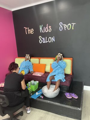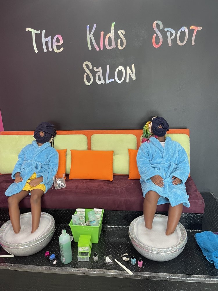 The Kids Spot Salon offers amenities such as Wheelchair Accessible, Appointments Only, Outdoor Parking, Parking Lot, Free Wi-Fi, Accepts Credit Cards, ensuring a comfortable and convenient experience for clients.